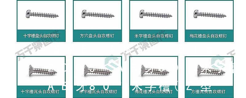 B:球面圓柱頭; C:圓柱頭; F(K):沉頭; H:六角頭;HW:六角頭帶墊圈; O:半沉頭; P:平元頭; R:半元頭;PW:平元頭帶墊圈; T:大扁頭; V:蘑菇頭;④ 螺釘牙型 A:自攻尖尾(日標第1種)疏 1、自攻螺釘的螺絲一般為機螺紋,而 自擠螺釘采用自攻螺紋。 2、在扳擰方式中, 自擠為確保高速自動采用了裝配扳手,而自攻螺釘采用開槽。 螺釘型號如下: (1)十字槽盤頭自攻螺釘:GB/T6560,ASME B18.6.4,SAE J81,? SAE J81。 (2)